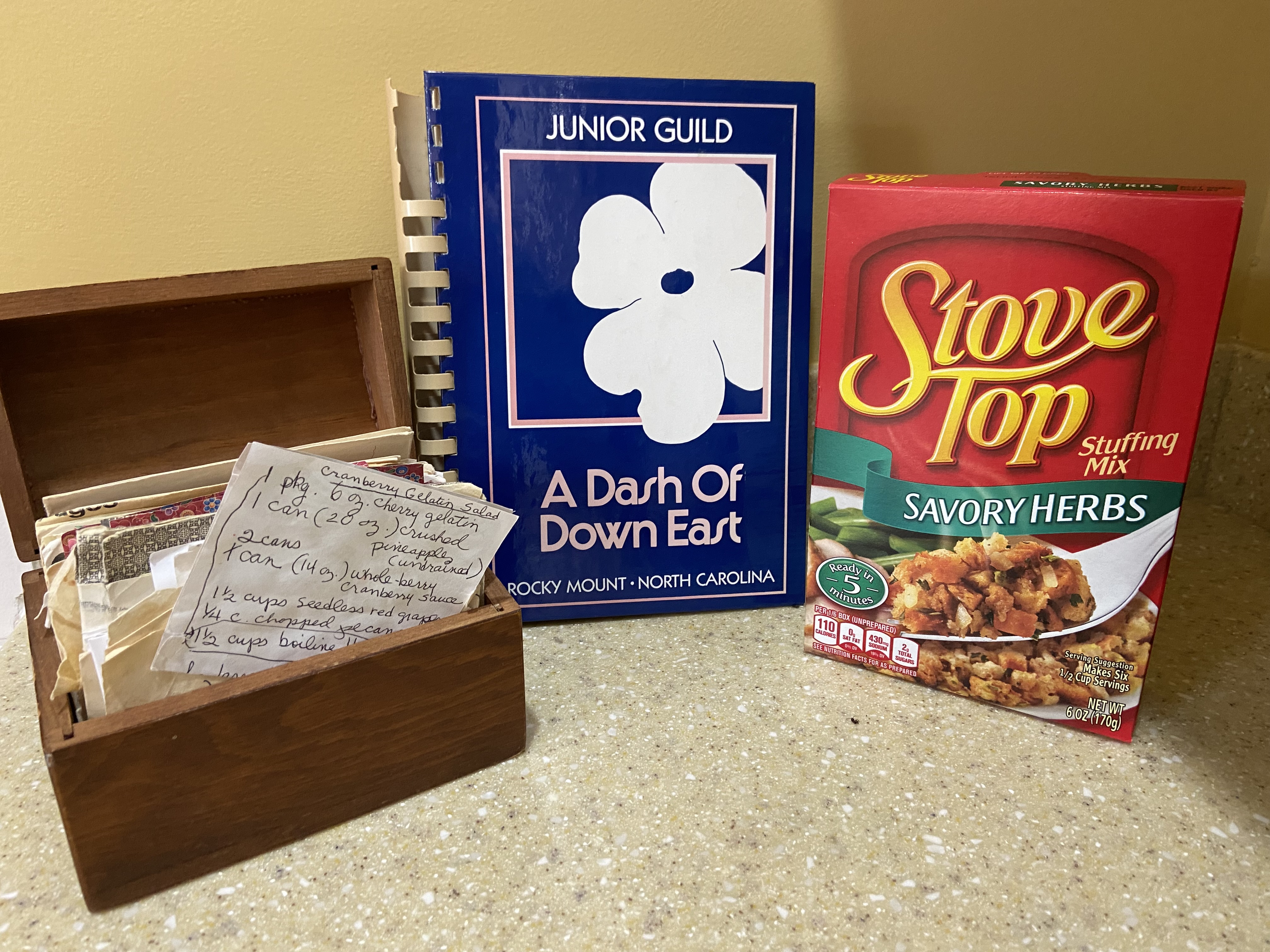 I love the 1986 edition of the Rocky Mount Junior Guild cookbook, A Dash of Down East (in the picture above). It contains real recipes for real people. The sweet potato casserole recipe, my other improvement in Mama’s Thanksgiving menu, comes from this book.