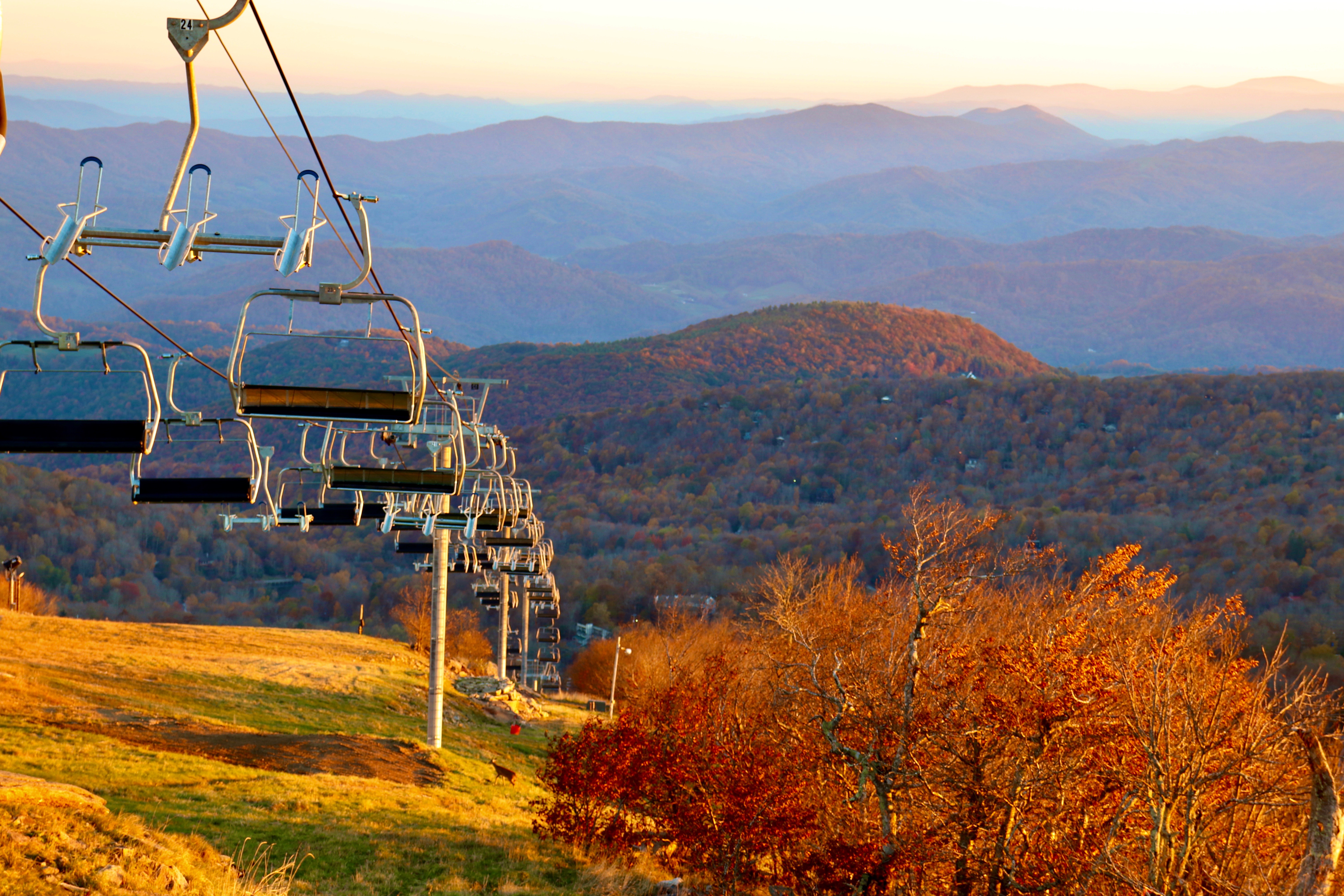 Finally, to complete this celebration of all that is fall, here’s a photo taken by my new son-in-law, who captured an early October morning at the ski lift on Beech Mountain. I could title this “For Purple Mountains, Majesty.” Or even better, “What Hath God Wrought.”