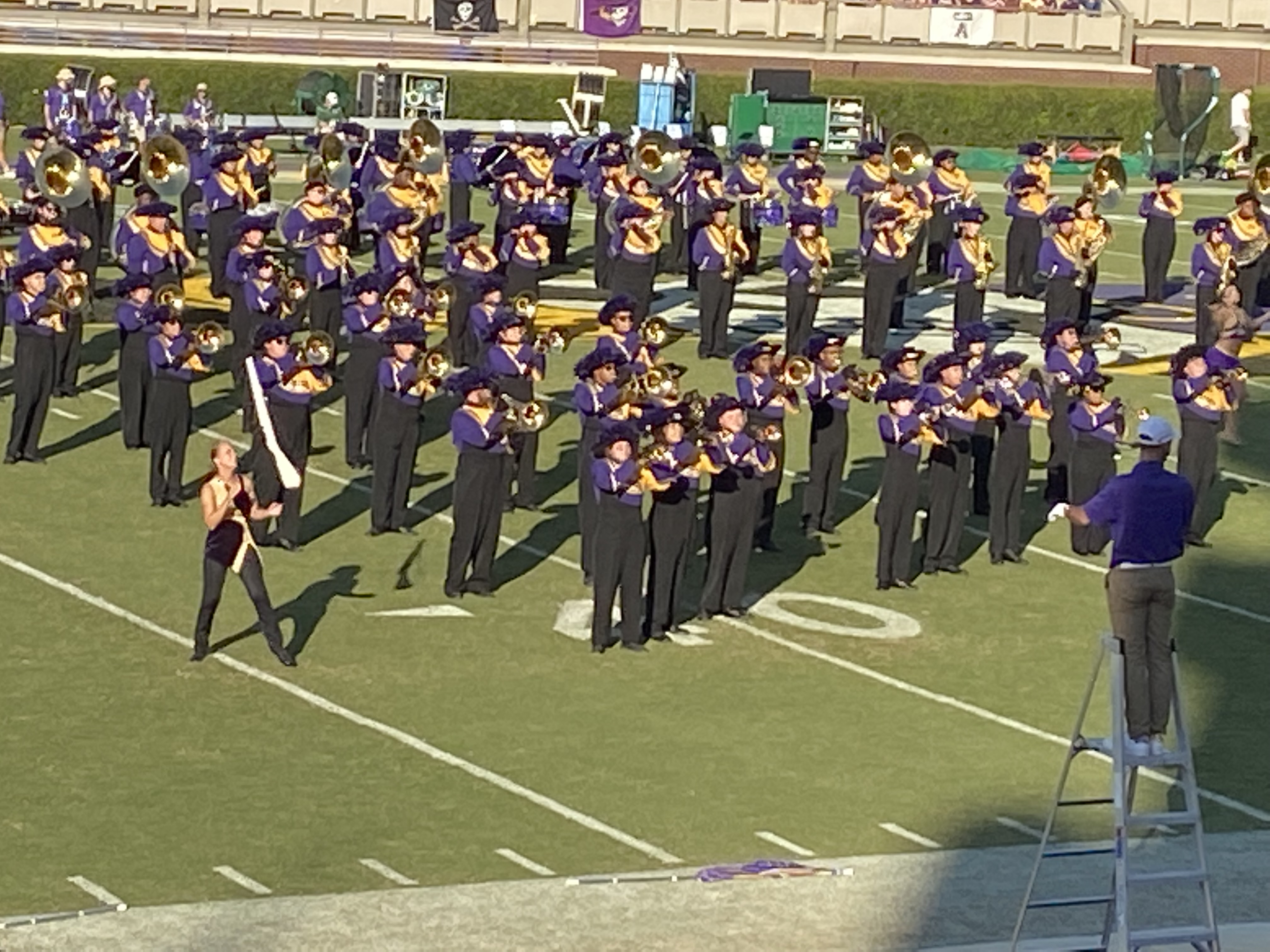 The football team doesn’t always win, of course, especially in recent years, but the band never loses. My husband goes down at halftime to meet his cousin and hash over what’s happened so far, but I stay and watch the Marching Pirates before hitting the concession stand.