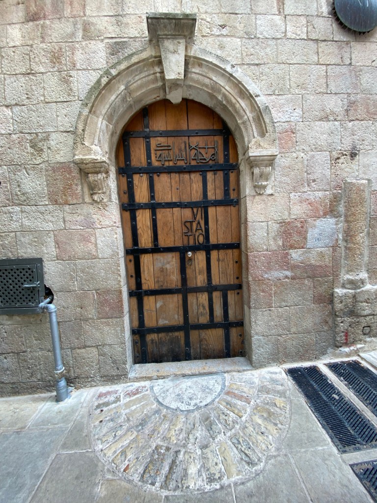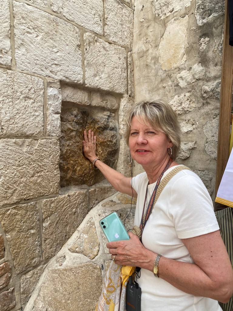 According to our guide, some sites in Jerusalem claiming the presence of Christ may be based more on folklore than the Bible. For example, below I have my hand in an indentation supposedly left by Jesus as he leaned against the wall for support on his walk to be crucified. Am I covering the handprint of Jesus? Probably not. Notice I’m standing upright, as Jesus, beaten and under the weight of the cross, would have been bowed.