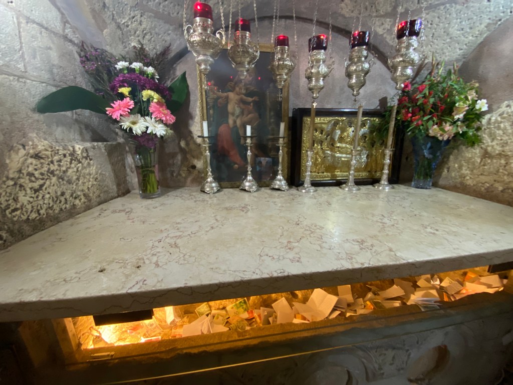 Not far away from what is believed to be the site of the crucifixion in this church is the location of Jesus’ tomb. There was such a long line to enter that I passed on the opportunity. Also, I liked the idea of the Garden Tomb, which I’d visited a day prior, as being where Jesus was interred.