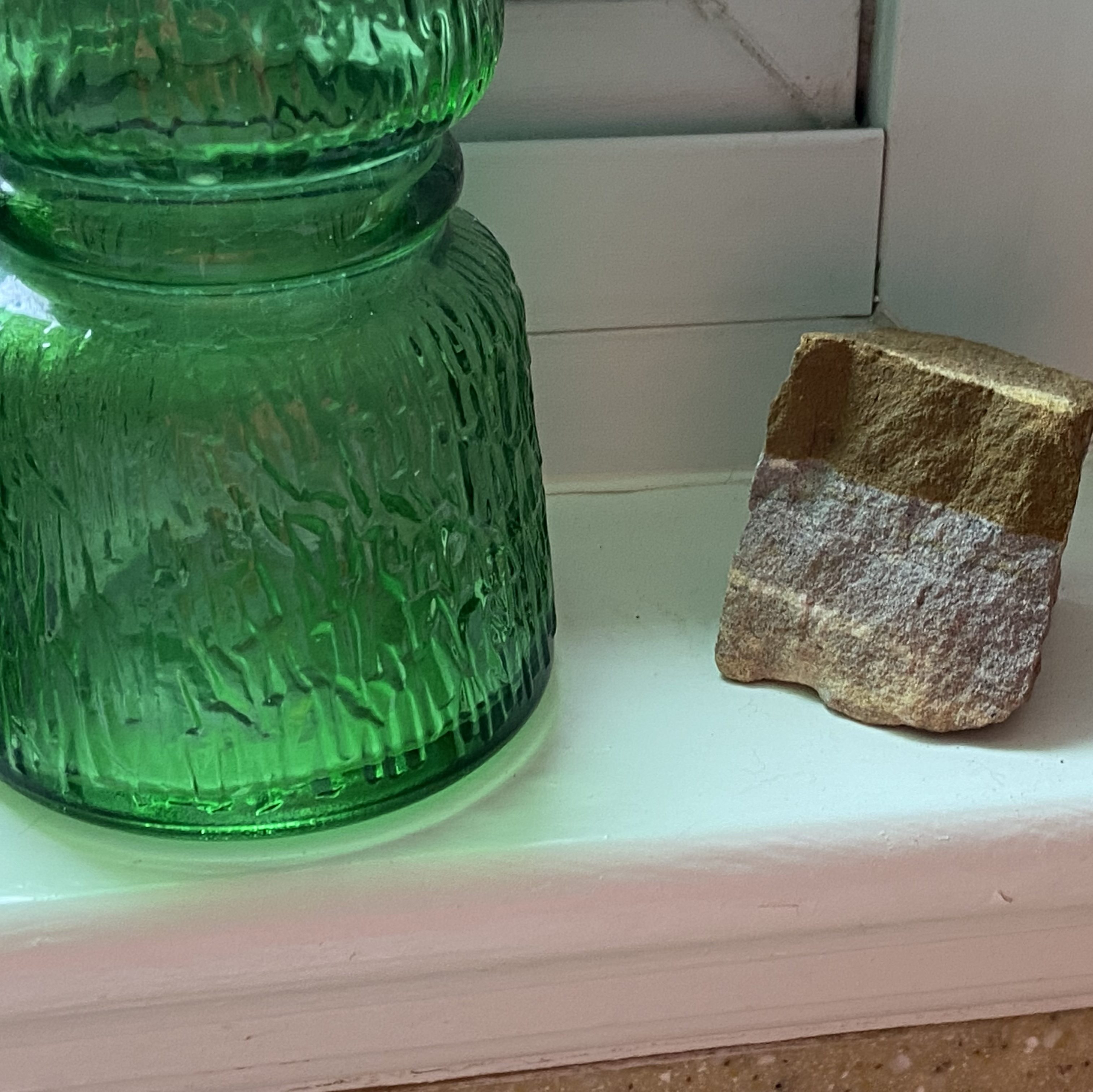 I keep this rock on my windowsill over my kitchen sink. It reminds me of how fortunate I am to live in America, a country where young children are in school rather than helping their families eke out a living from tourists.