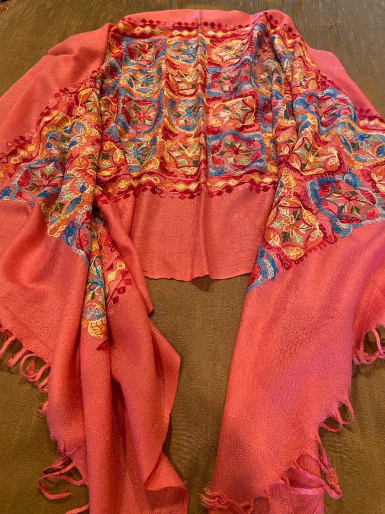I left with two pretty shawls for 40 dinars, about $26 each. A fair deal, I suppose. Here’s the one I kept for myself.