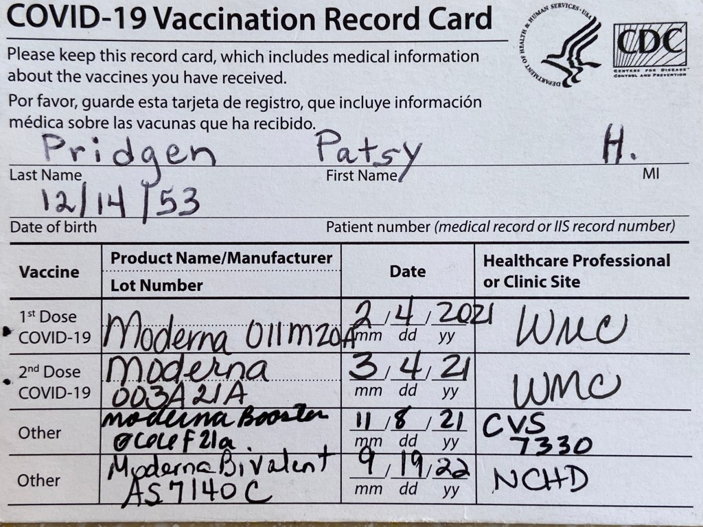 For better or worse, my Covid card is now completely full and up-to-date.