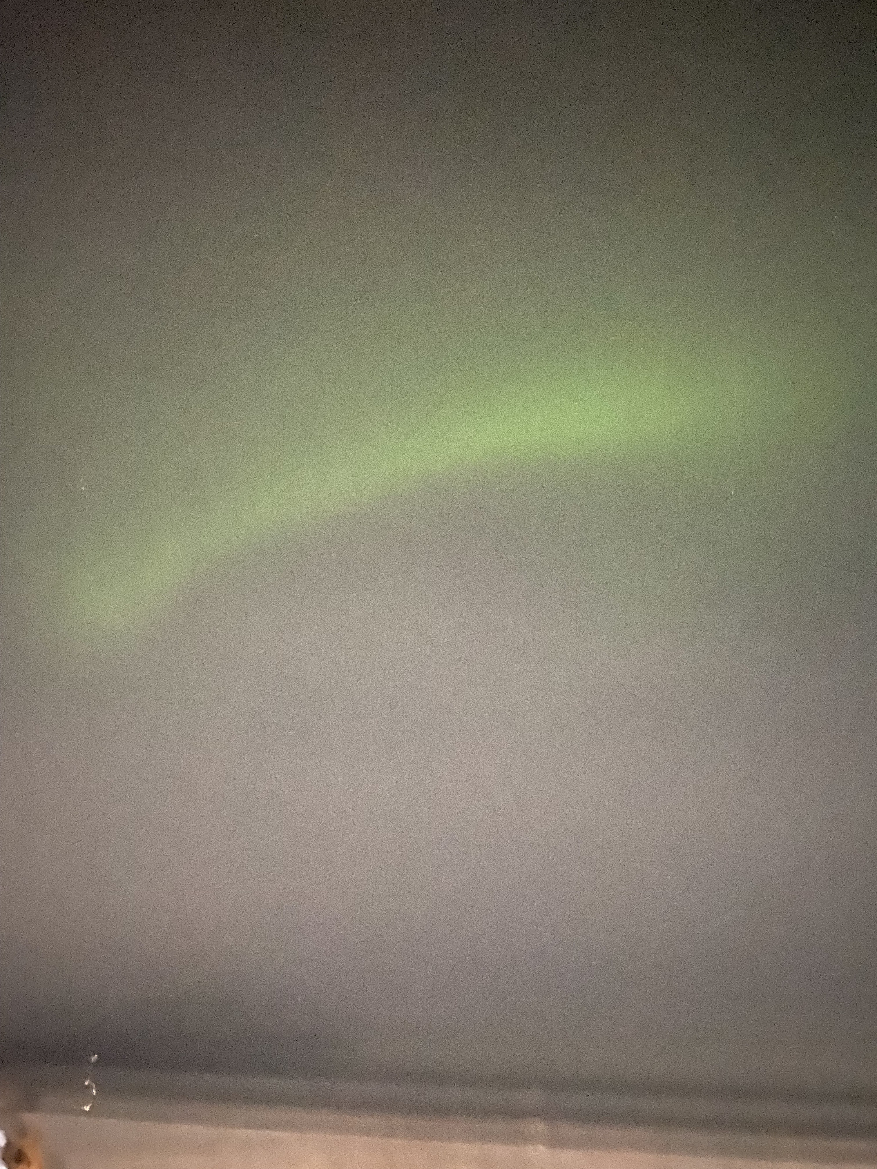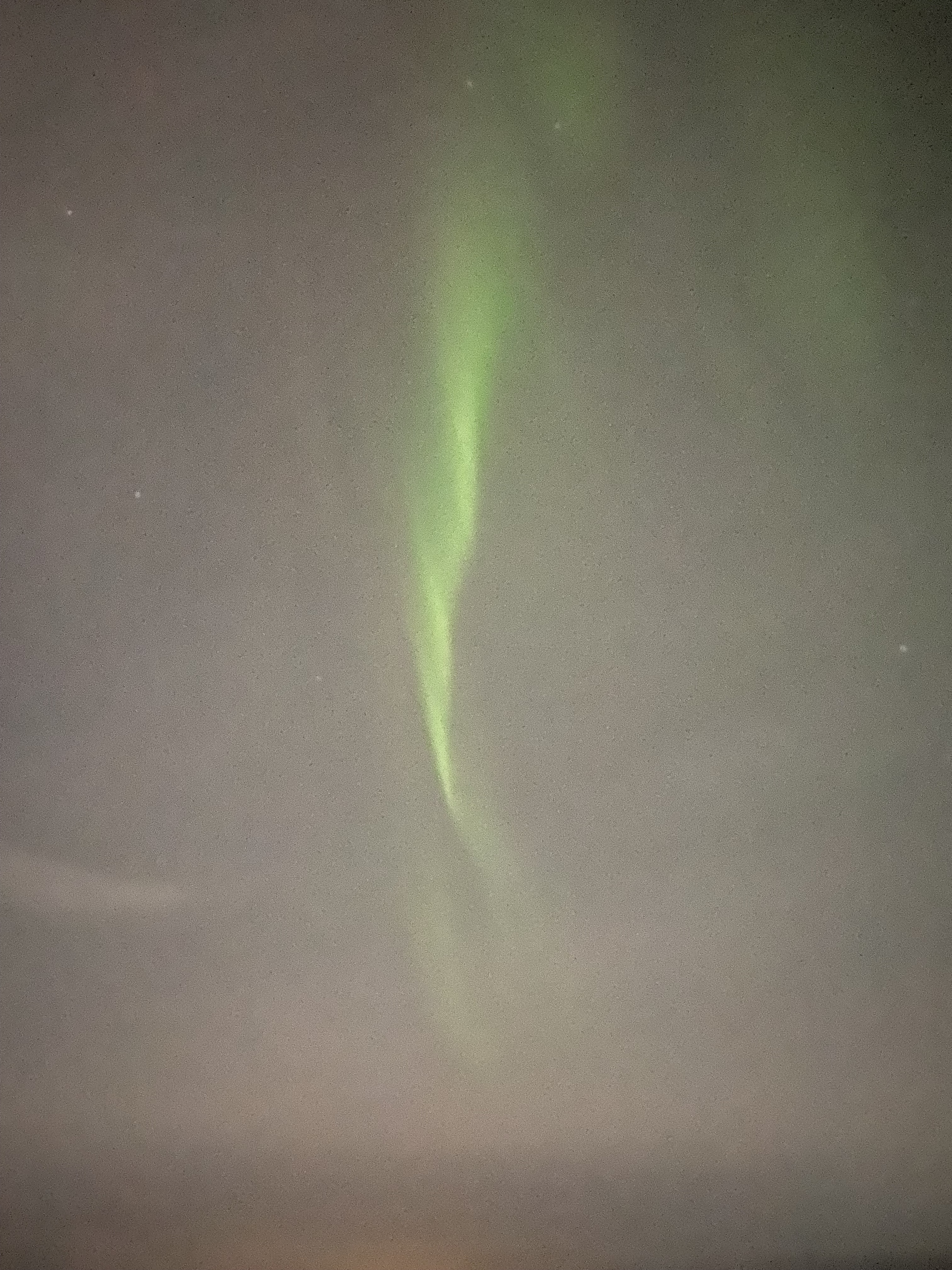 Lo and behold, streaks of green light were appearing. The sky didn’t look like the postcards, but we could now say we’d seen the Northern Lights, the Aurora Borealis. The pictures below were taken by my husband, who’s usually the trip photographer.