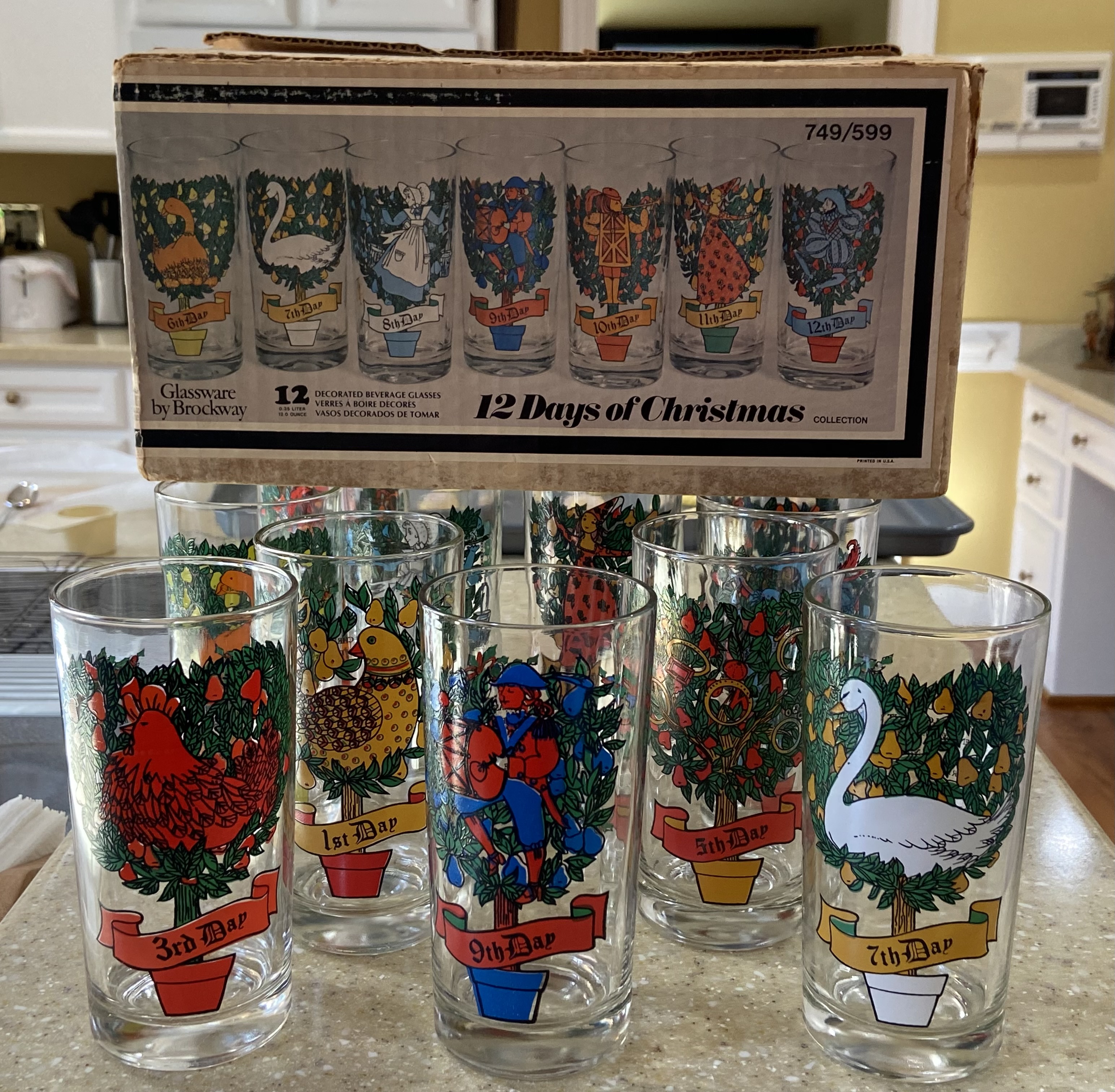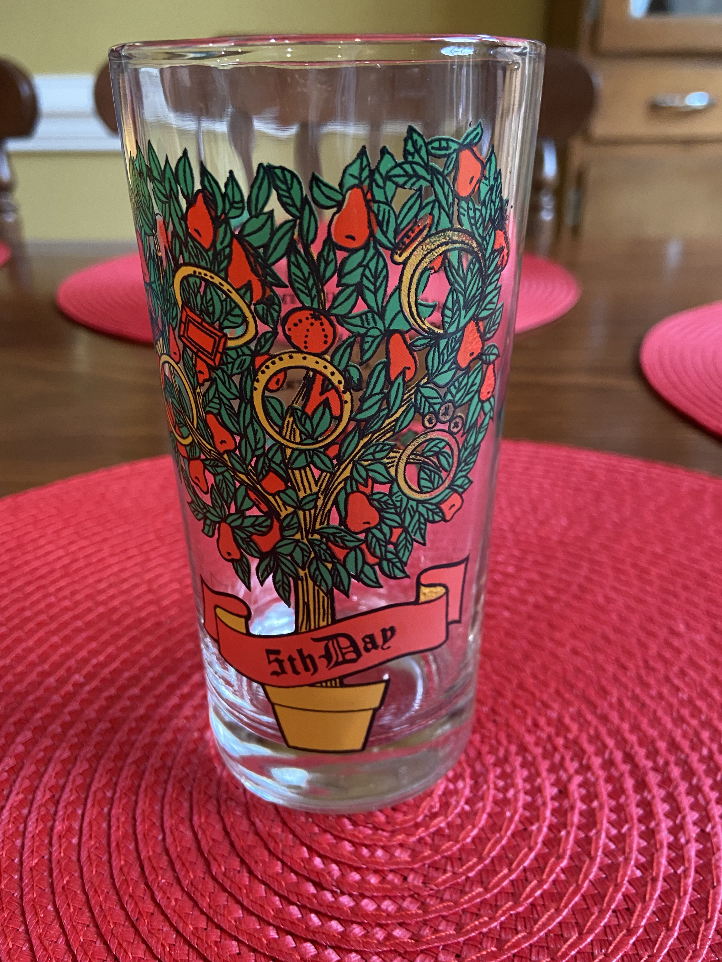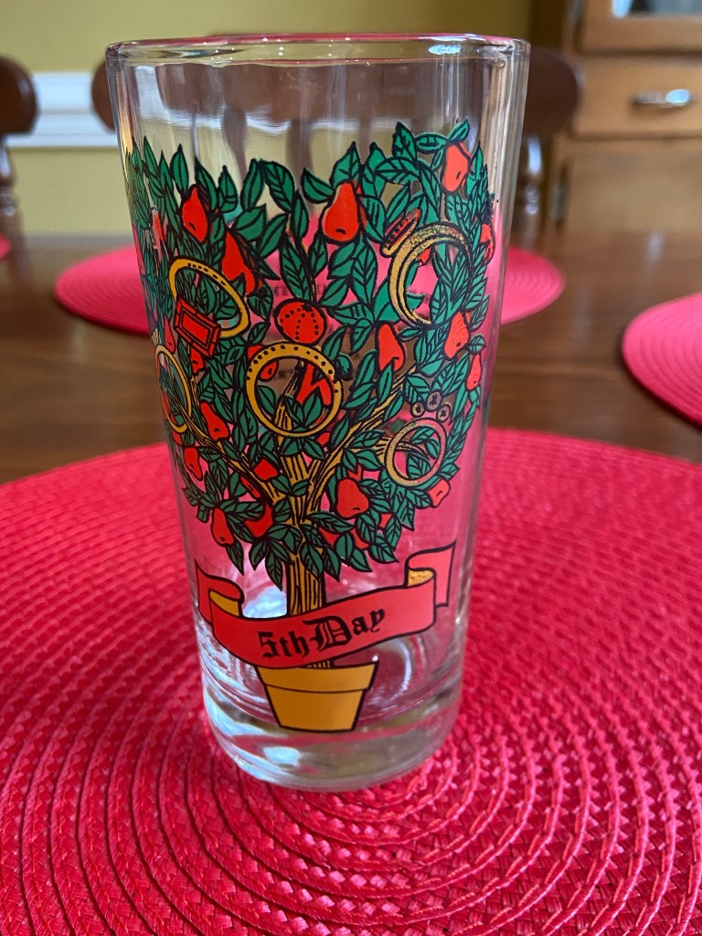 Many years ago, I was lucky enough to inherit a 12 Days of Christmas set of drinking glasses from a grandmother. Picking one out for my daily iced tea is a small way I continue to celebrate after December 25. I try to use the appropriate day, which sometimes means looking in the dishwasher if someone else has taken a glass out of turn. Not everyone, I realize, is as Type A as I am about matching the glass to the day.