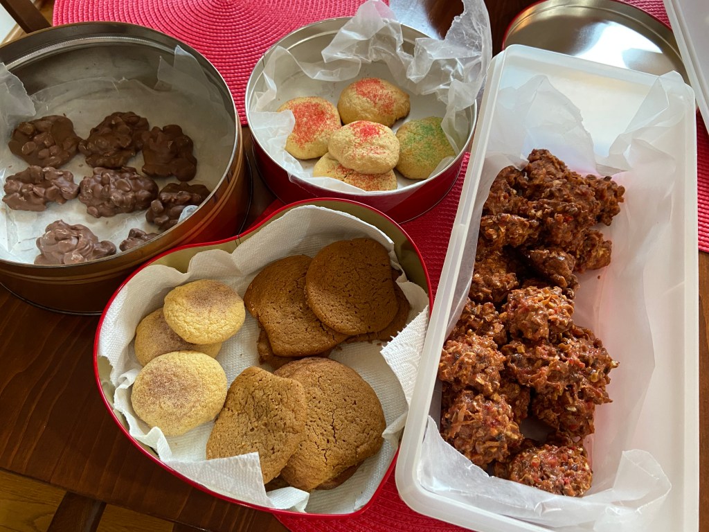 What else do I do to celebrate these days after Christmas? The baking is over, but goodies that escaped the clutches of visiting grandchildren (and their parents) are still around the house. My festivities continue!