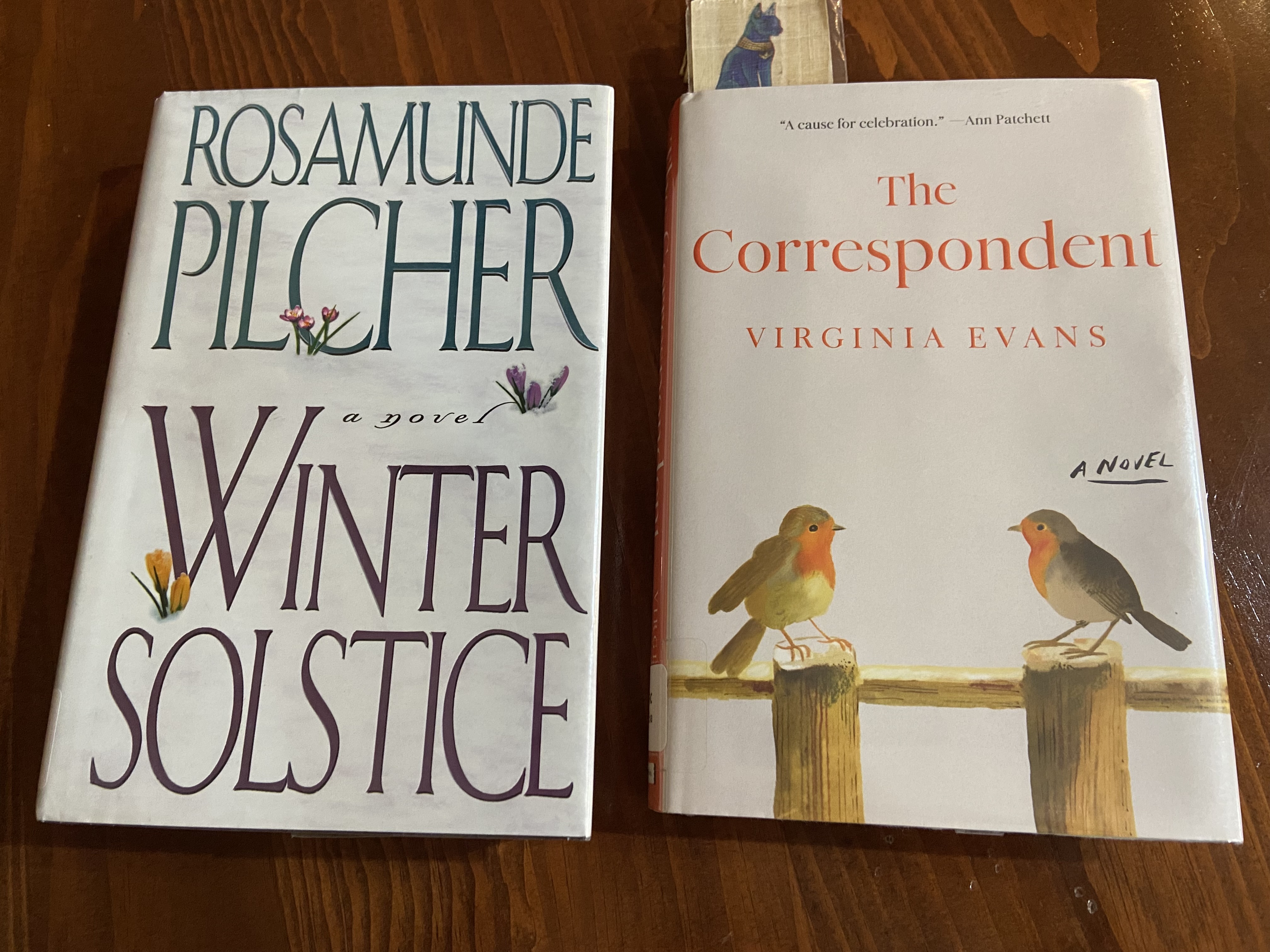 These leisurely days leading up to Old Christmas have given me more time than usual to read. I’ve enjoyed both an old book, Rosamunde Pilcher’s Winter Solstice and a current New York Times bestseller, The Correspondent by Virginia Evans. As you can see from my bookmark, I’m still savoring The Correspondent.