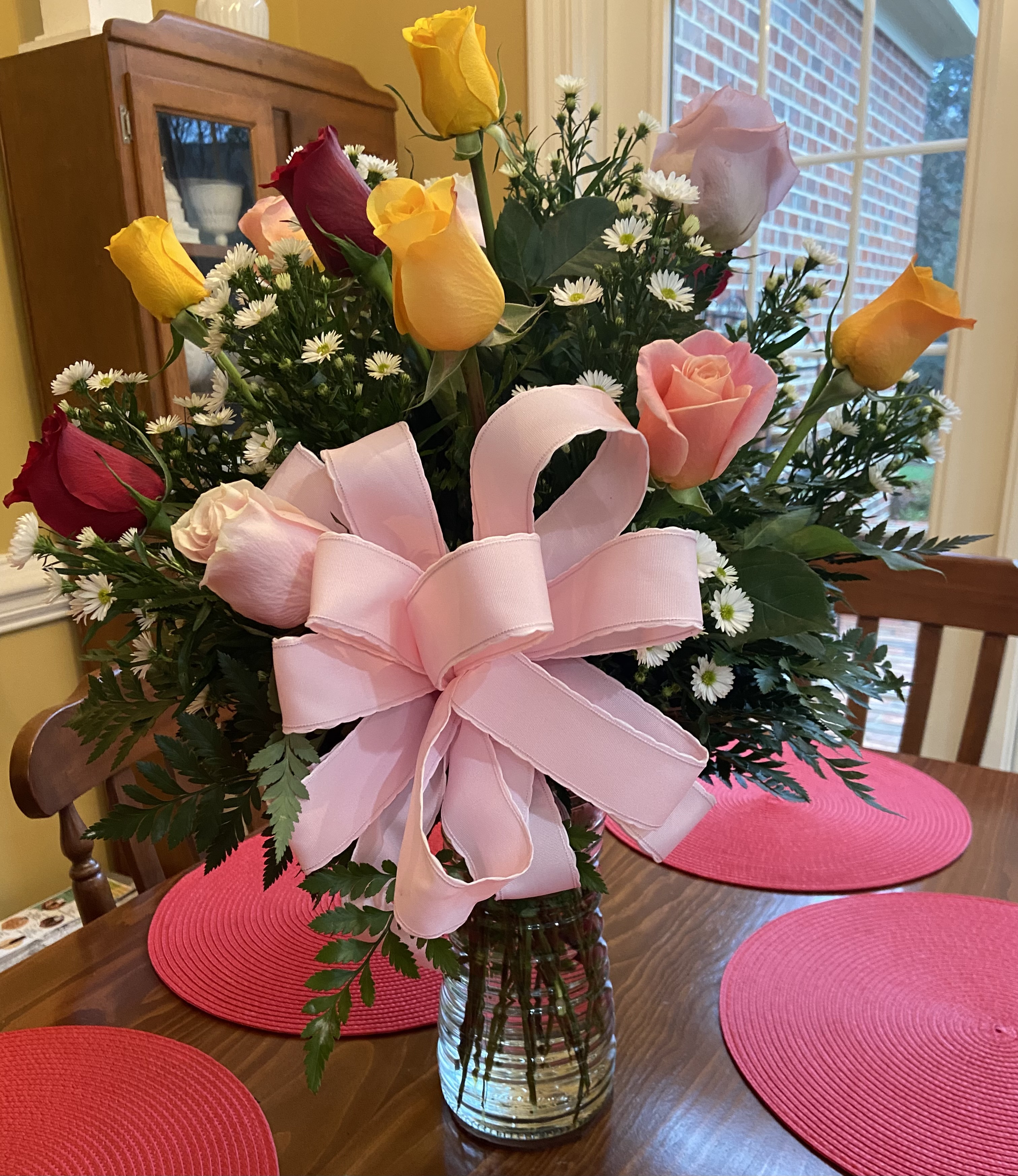 Yesterday marked my 49th wedding anniversary. Flowers from the husband greeted me as I entered the kitchen for my morning coffee.