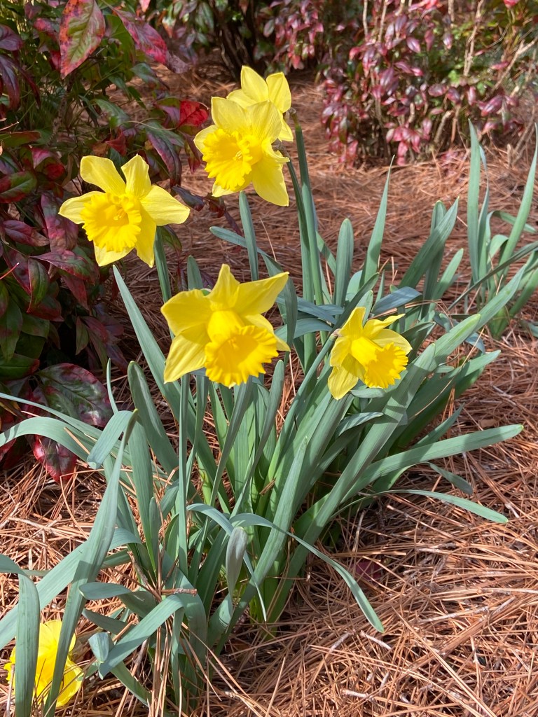 How are your daffodils looking this year? I think the January/February ice and snow storms, unusual for where I live, did a number on mine. So far, they’re not blooming nearly as well as last year, and the flowers aren’t standing at attention as they usually do.
