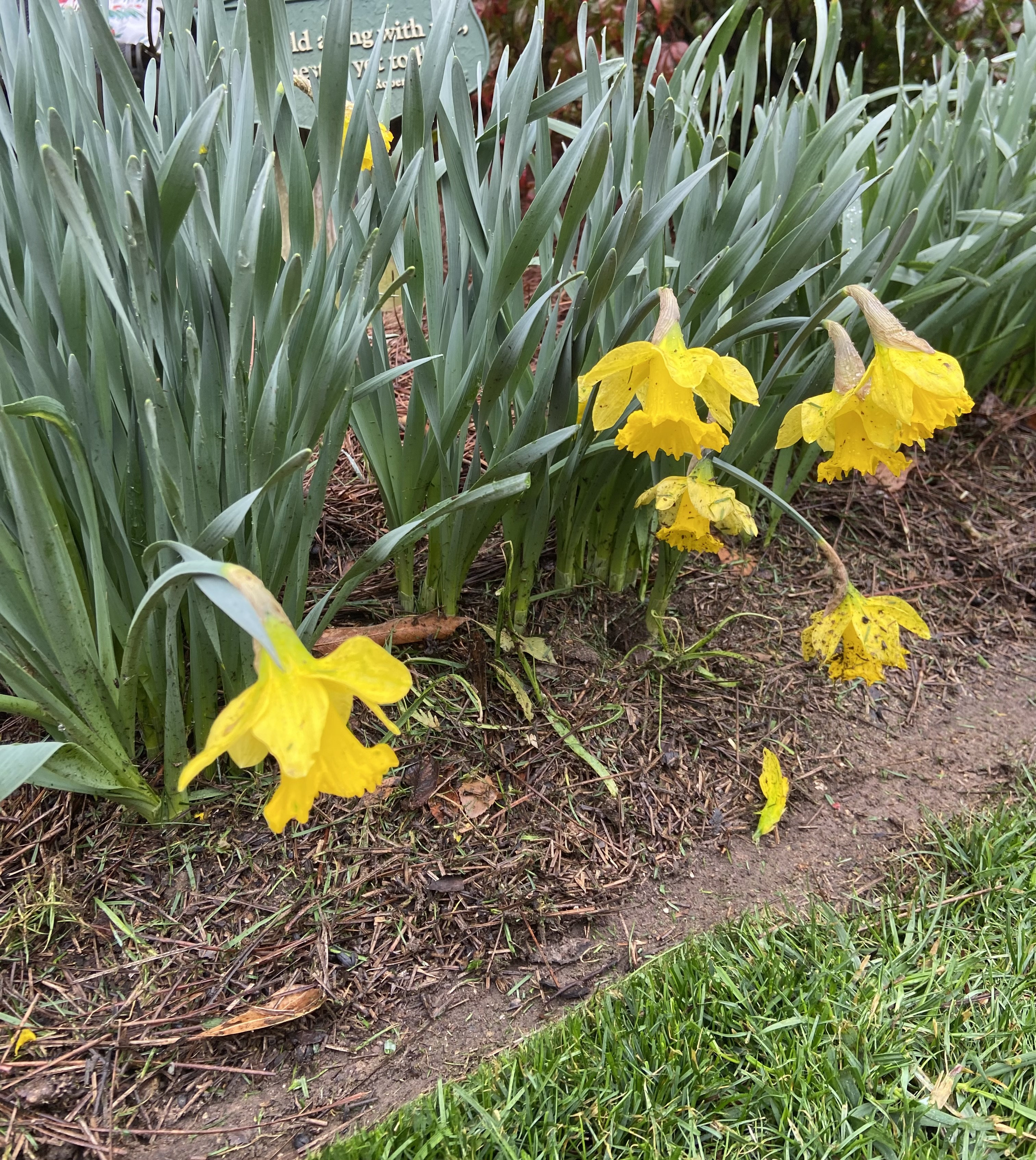 I have a friend who says she talks to her daffodils, warning them that if they bend over, she’s going to cut them and bring them in the house. They’ll end their lives in a vase! I guess I need to get out my scissors.