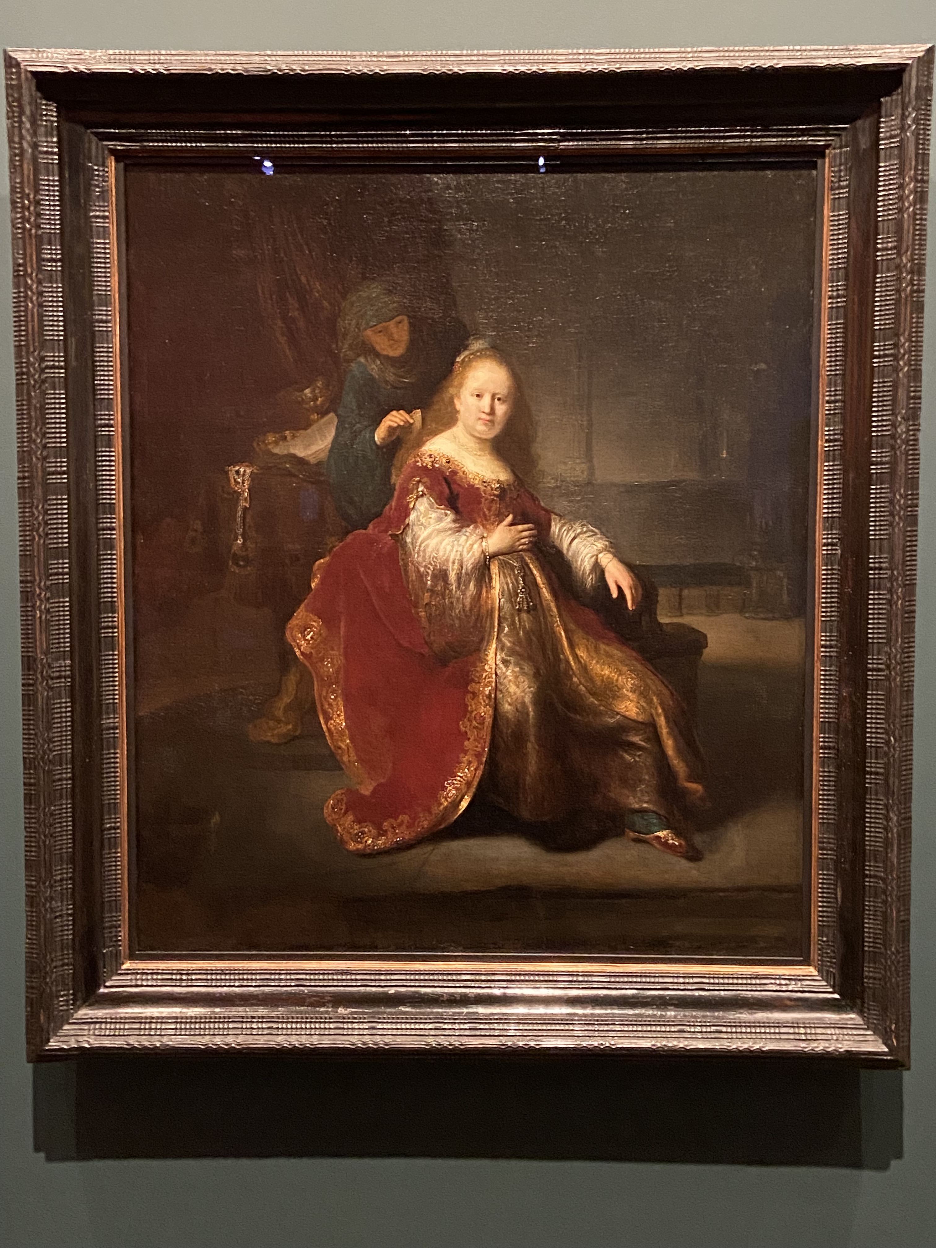 The drawing card of the Raleigh exhibition is a painting by Rembrandt, titled “A Jewish Heroine from the Hebrew Bible.” Though Rembrandt doesn’t explicitly say the subject of his work is Esther, it’s widely believed that here he’s portraying her as she gets ready to go before her husband, King Ahasuerus, to set in motion a plan to save the Jews.