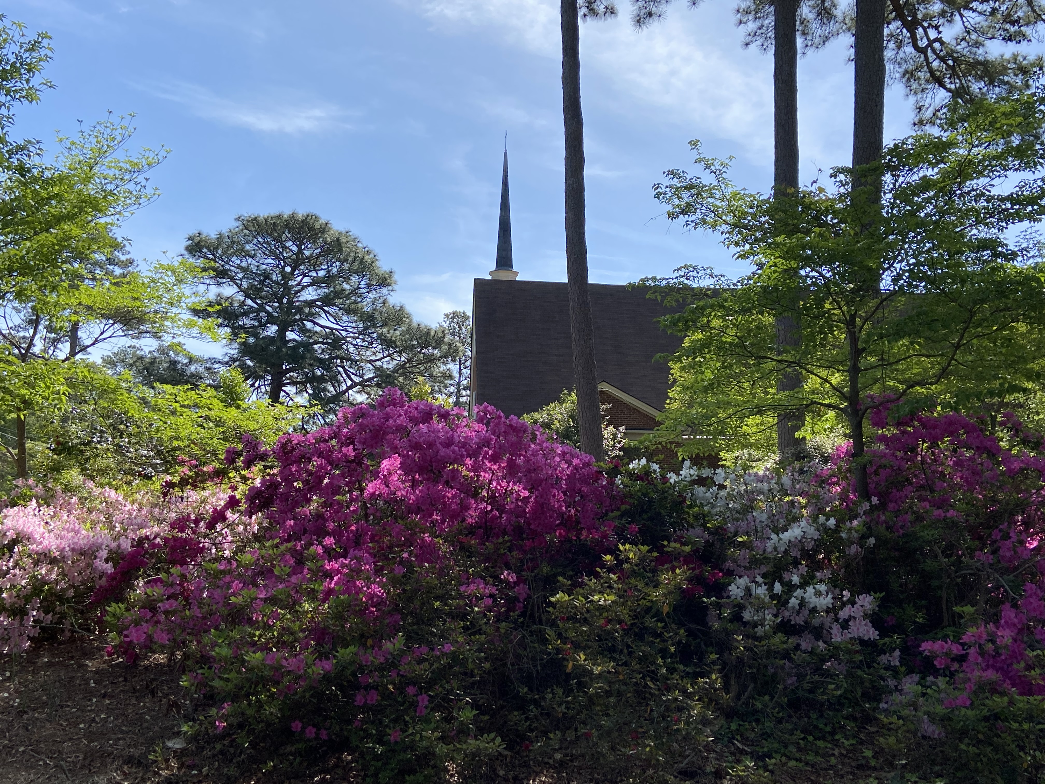 Leaving the West Haven neighborhood, I passed by Lakeside Church, where I stopped to take in the beauty of the steeple, showcased behind a bed of multi-colored azaleas.