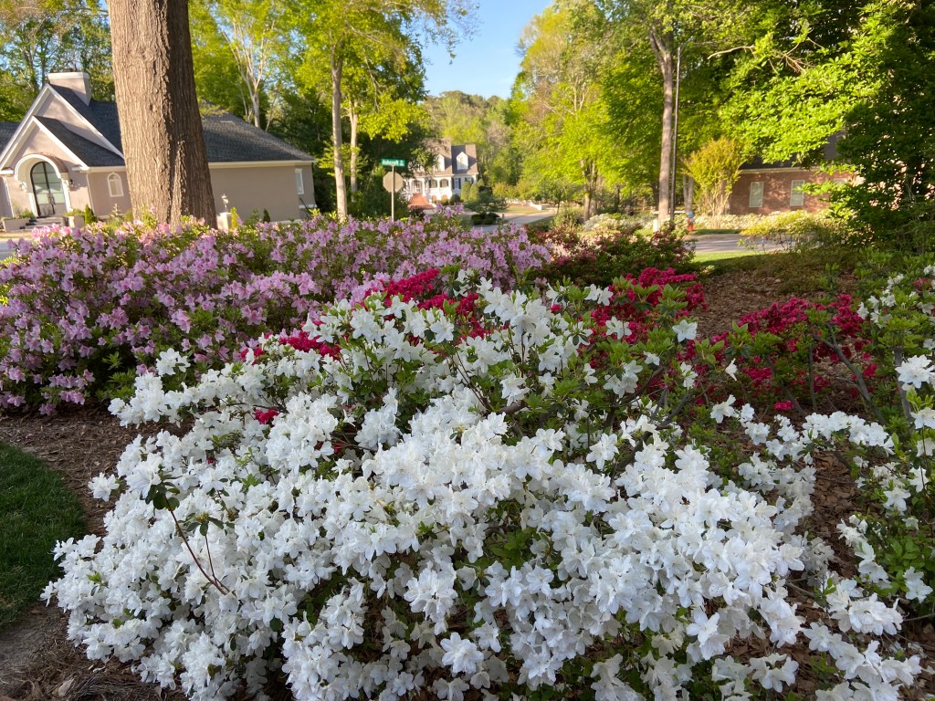 I love azalea season in my Greystone neighborhood. I have a yard full of different varieties and usually add at least one a year–or occasionally, several. Sometimes I’m matching others in a bed, and sometimes I see a new color I like! In my opinion, there are no wrong landscaping choices when it comes to azaleas.