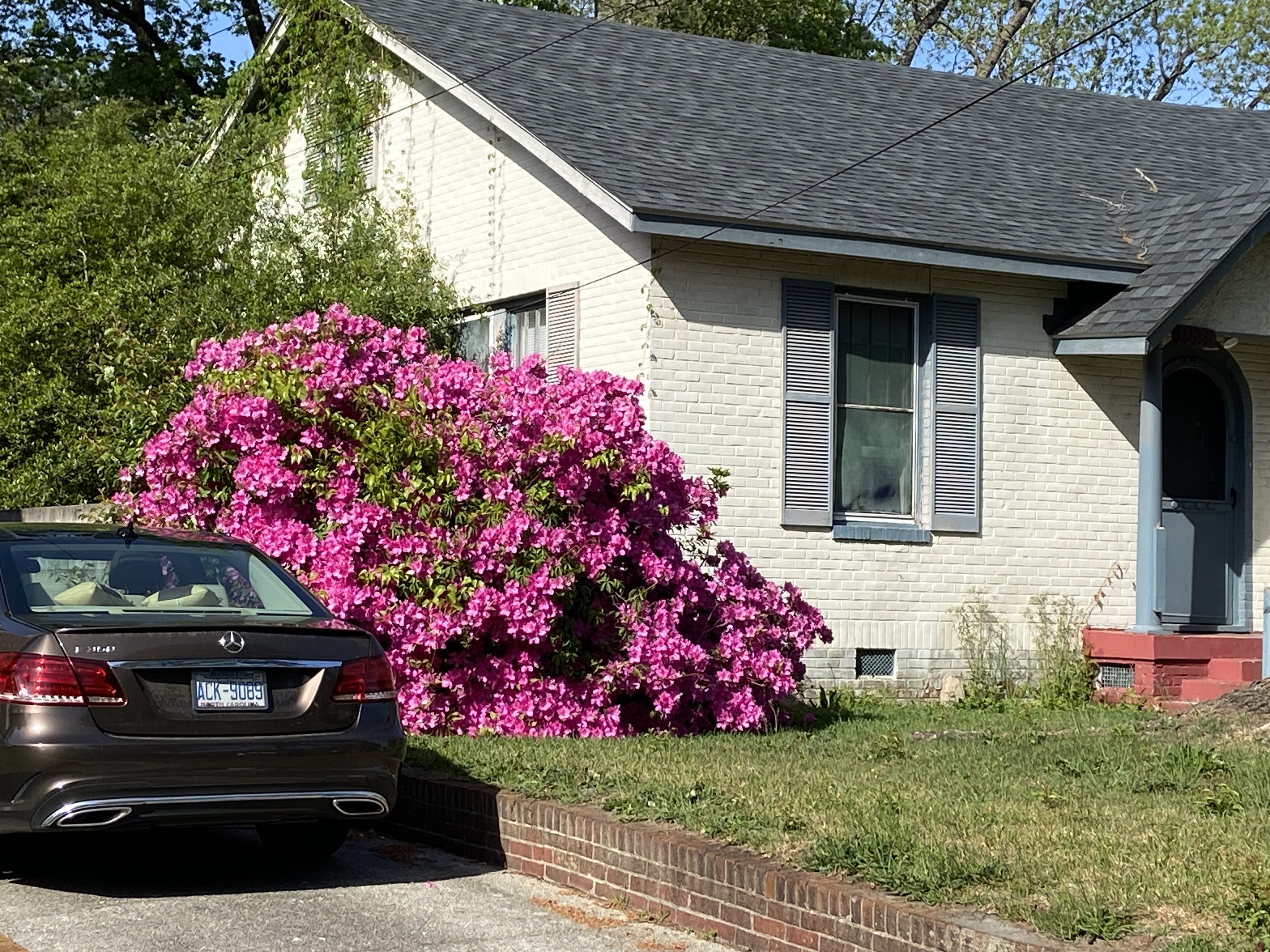 West Haven is a historic neighborhood in Rocky Mount, and so many of the homes here have mature landscaping, which sometimes means huge azaleas. Most of this house was hidden behind these lovely azaleas at the edge of the front yard.