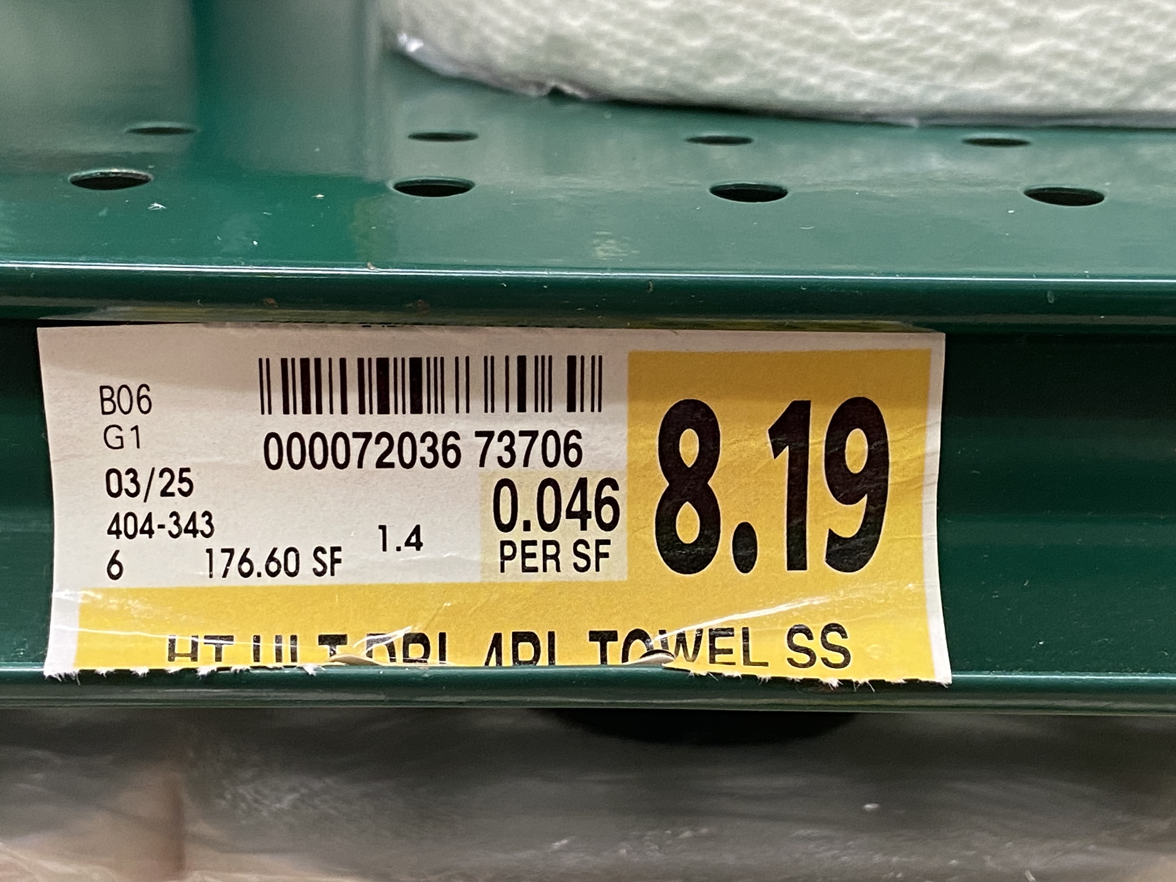 You can use the same bar code comparison when buying paper towels. The first thing you want to do, though, is to be sure you’re picking out a paper towel that allows you to tear a half sheet at a time. Big savings since a lot of times, you don’t really need a whole paper towel.