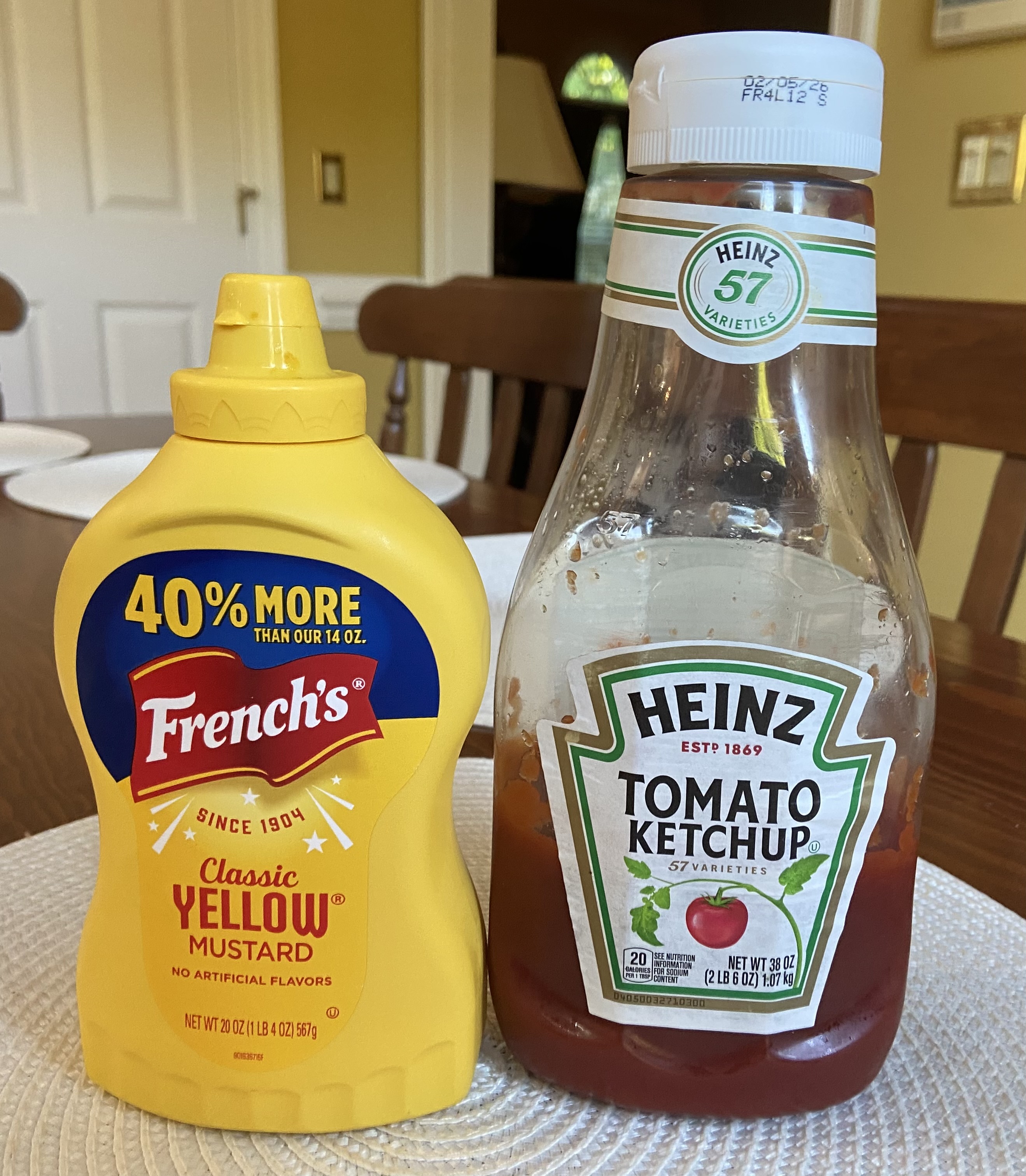 Remember I’m talking paper products. We all have certain items we can’t part with. I want French’s mustard and Heinz ketchup. No compromise here. I try to catch these condiments on sale.