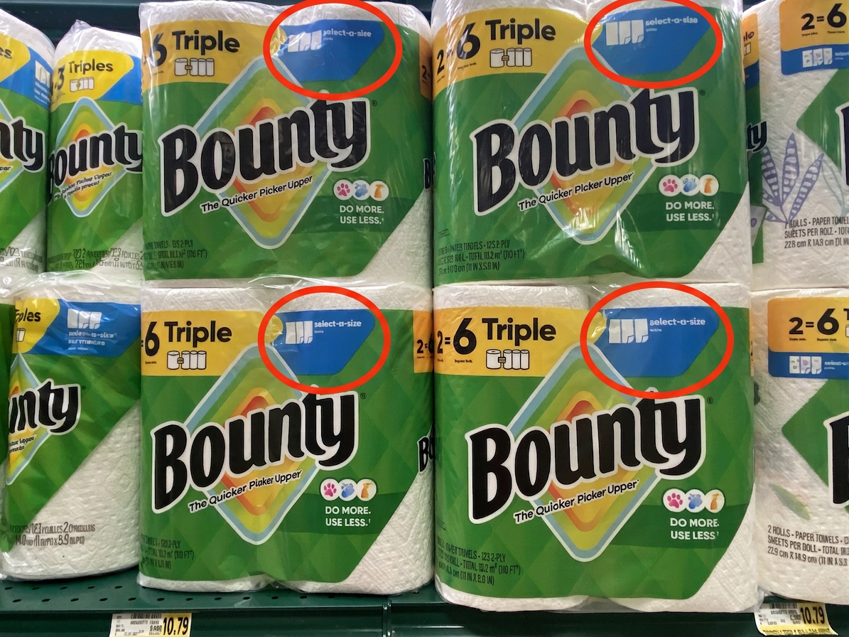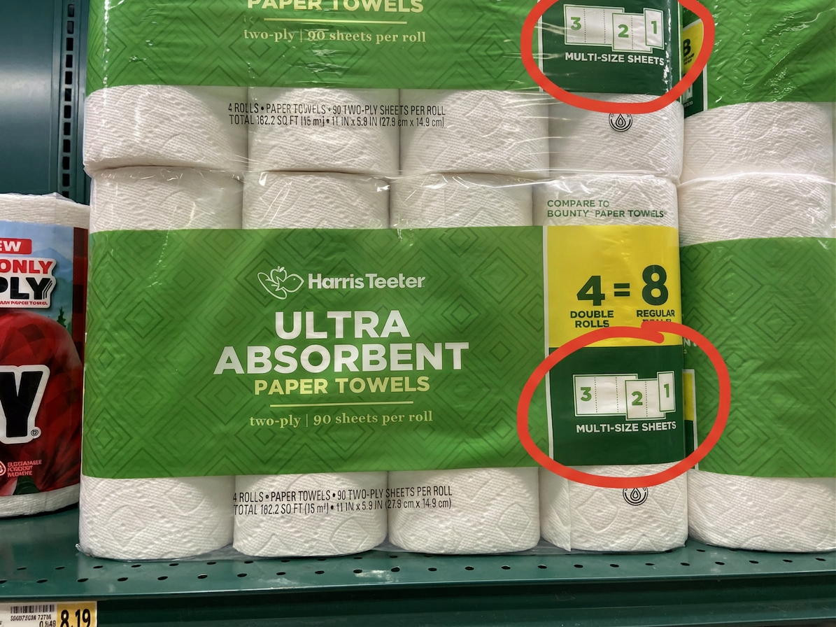 Can you see where both Bounty and the Harris Teeter brand show you the “pick a size” option?